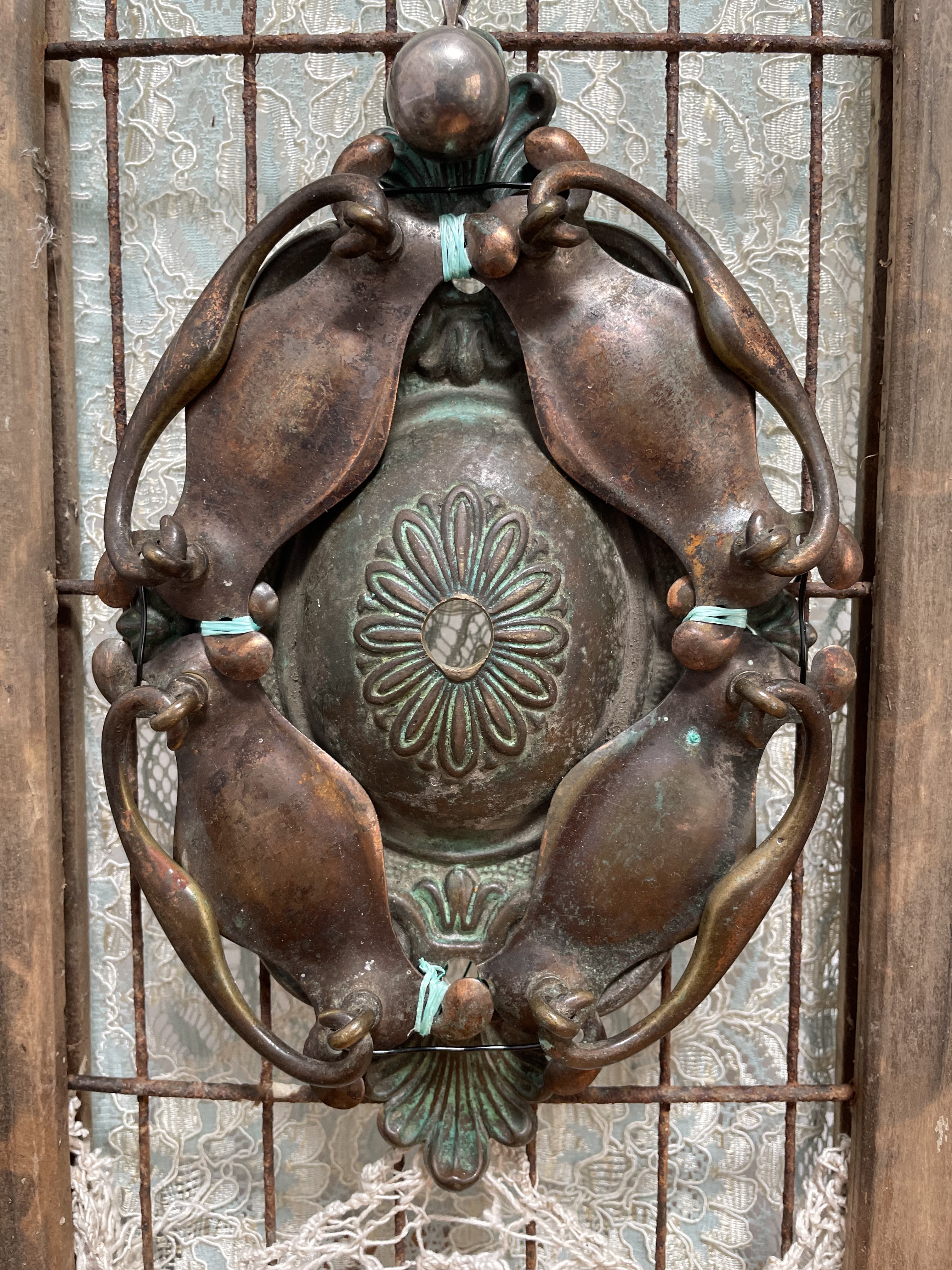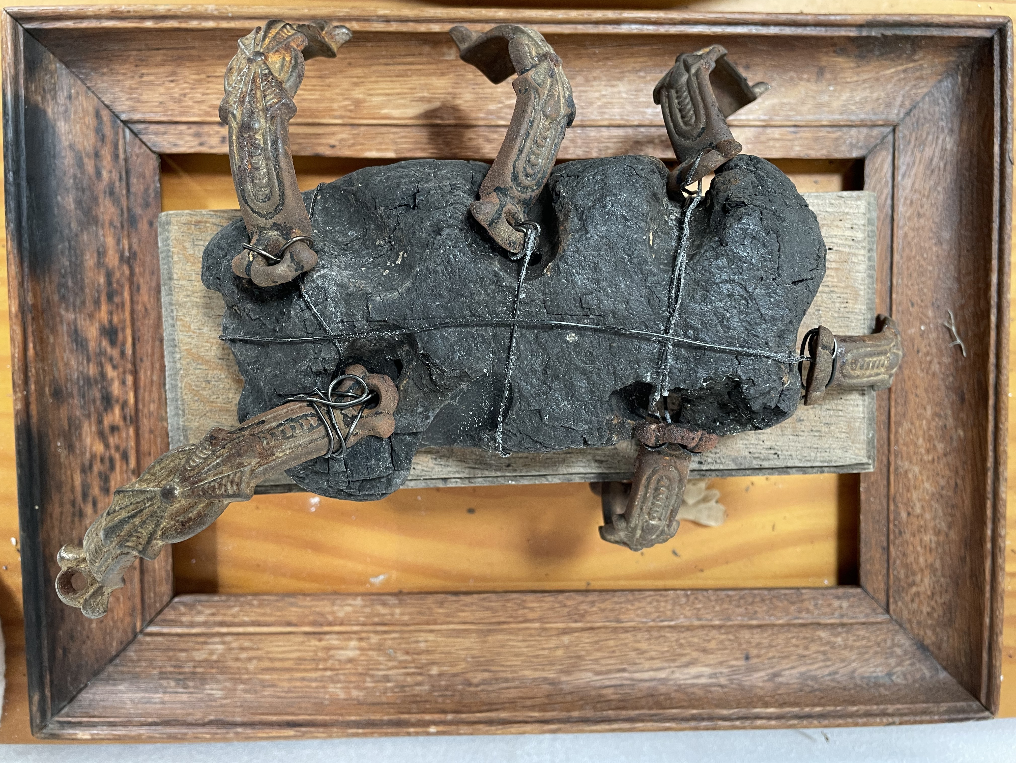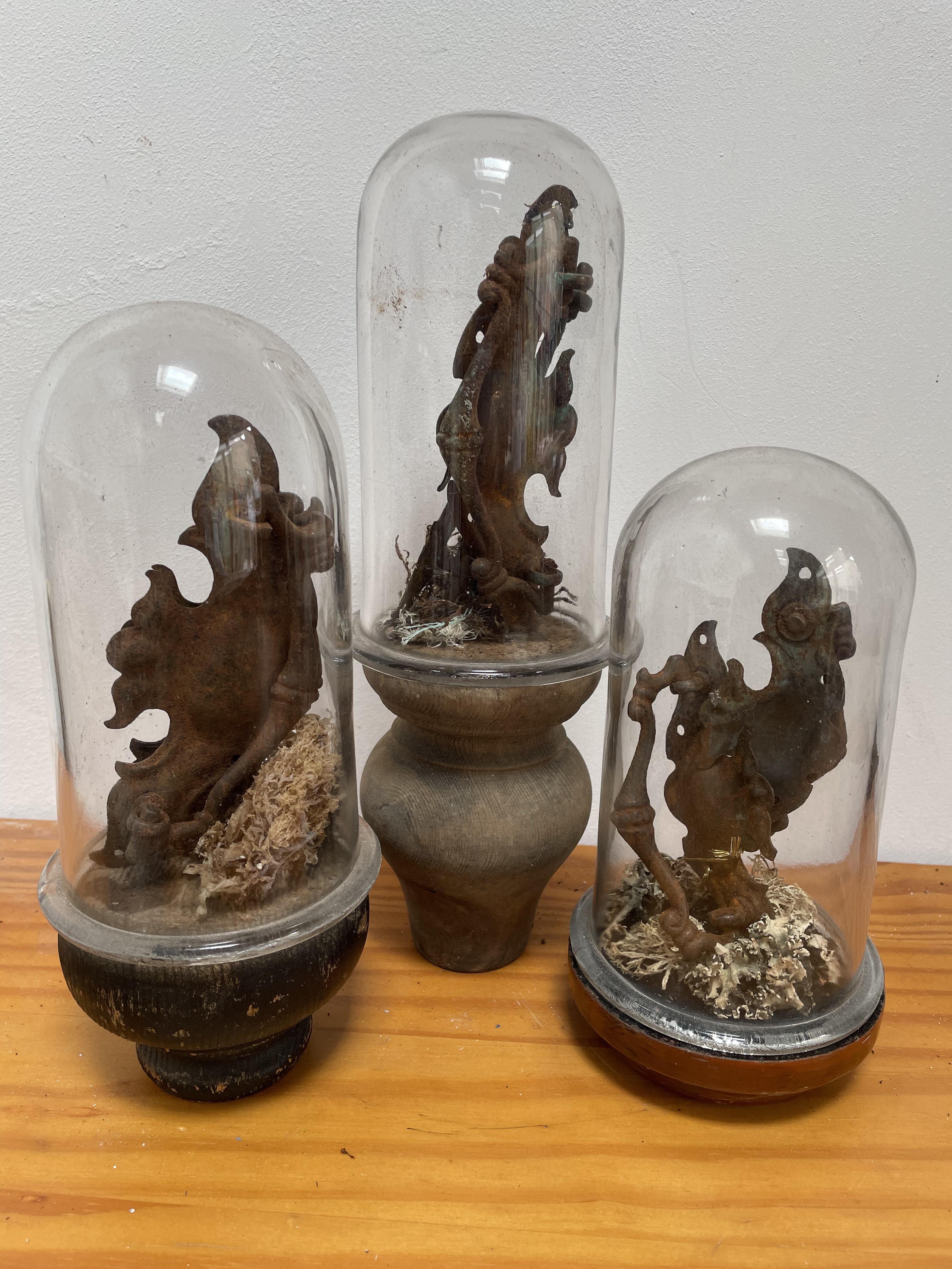 A collection of discarded, rusted, valueless, vintage draw handles typically rescued from the darkest corners of architectural salvage shops, assembled into displays evoking natural history museum specimens.